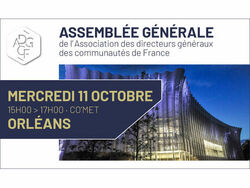 L'ADGCF tiendra son Assemblée Générale à l'occasion de la 33ème convention des Intercommunalités de France le Mercredi 11 octobre de 15h00 à 17h00à Orléans (CO'Met - Rue du Président Robert Schuman, 45100 Orléans)
