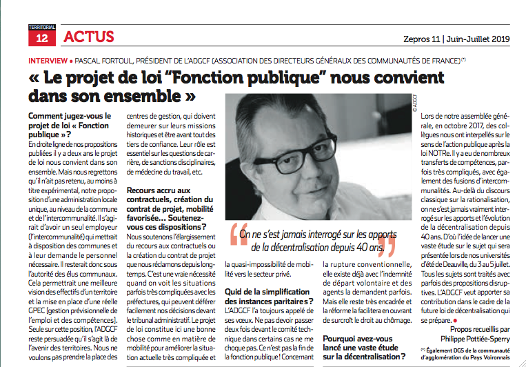 Interview de Pascal Fortoul, Président de l'ADGCFSource ZePro Territorial Juin - Juillet 2019